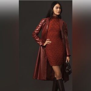 NWT MAEVE ANTHROPOLOGIE Long-Sleeve Scrunch Textured Mini holiday Dress wine XXS