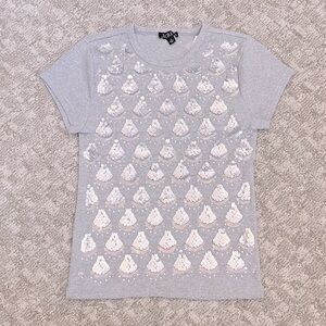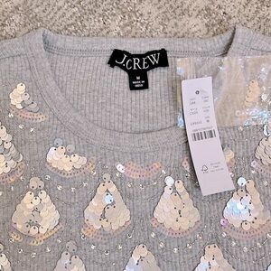 J.Crew Women’s Gray Rib Short-Sleeve Tee with Silver Sequin Embellishment—M