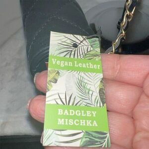 Keywords: Badgley Mischka, vegan leather, crossbody bag, black, diamond quilted, round studs, chain strap, spacious interior, card slots, women's fashion.