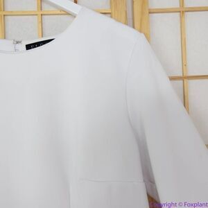Elegant white midi dress. Features flared sleeves. Perfect for any occasion.