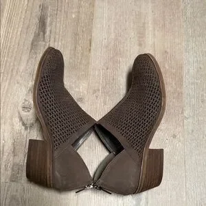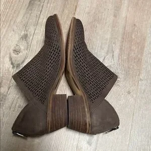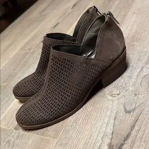 Vince Camuto Brown Perforated Sueded Leather Ankle Boots