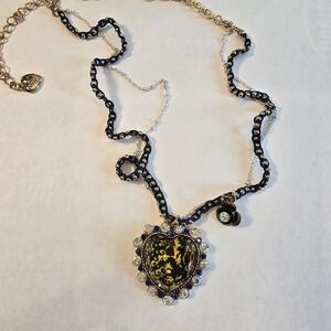 Charming necklace with a gold heart pendant. Center Heart with iridescent stones. Unique and stylish design. VERY dimensional with mixed materials.