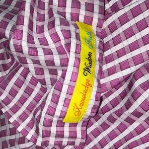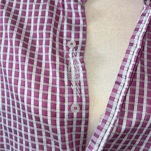 Stylish pink and white checkered button-up shirt. Perfect for casual wear.