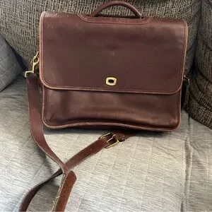 Vintage Coach Elegant Dark Brown Leather Briefcase