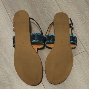 Experience the perfect blend of style and comfort with these Coach sandals. A sleek black and blue/teal color palette. Designed for casual outings, these sandals boast a flat sole and minimal heel height.