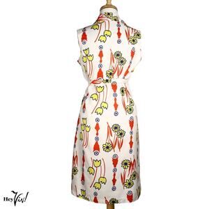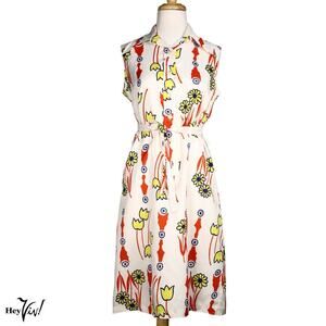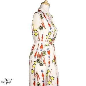 Vintage Ship n Shore Sleeveless Dress Yellow and Red Daisy Tulip Print