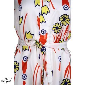 Vintage Ship n Shore Sleeveless Dress Yellow Red Daisy Print L B36 W36 - Hey Viv