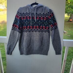 American Eagle Outfitters Fair Isle Hoodie Sweater XS Gray Seriously Soft Blend