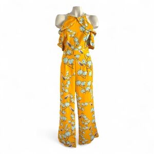 Varun Bahl by Anthropologie Warbler Ruffle Jumpsuit in a yellow motif SZ 8