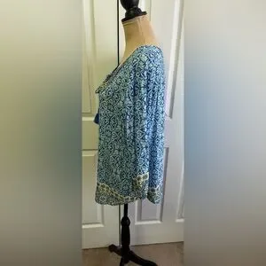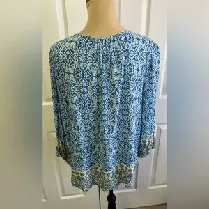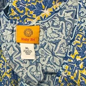 Ruby Rd. Blue and Yellow Patterned Blouse