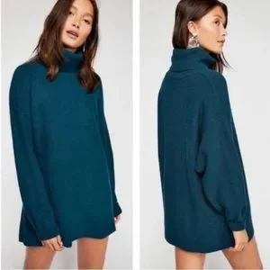 Free People Softly Structured Tunic Sweater Peacock Jewel Blue Cowl Neck