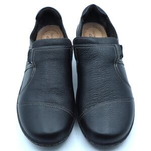 ULTRA COMFORTABLE! Excellent condition! Clarks Cora Poppy Black Leather Slip on Shoes Comfort Flat Loafer Womens 9.5