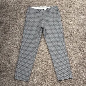 Elevate your style with these Bar III plaid dress pants. Ideal for any occasion. In good pre owned condition with a very minor discoloration on the inside of the waistband (not visible when worn). See photos!