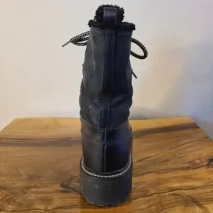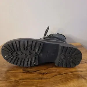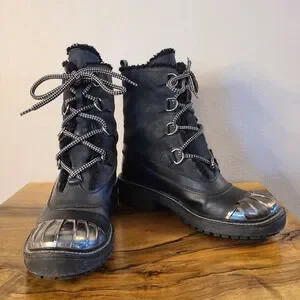 Miu Miu Combat Leather Winter Boots. These boots are in good preowned condition, there’s scuffs to the heels and outside and on the metal.