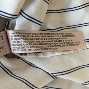 Massimo Dutti Mulberry Silk Button-up Stripe Shirt US4 white navy blue
