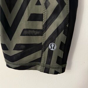 Stylish women's lululemon leggings featuring a bold geometric chevron pattern.