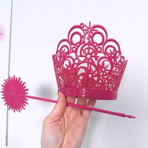 PINK GLITTER PRINCESS CROWN AND MAGIC WAND SET