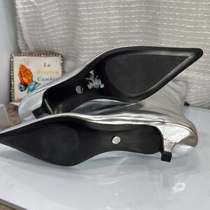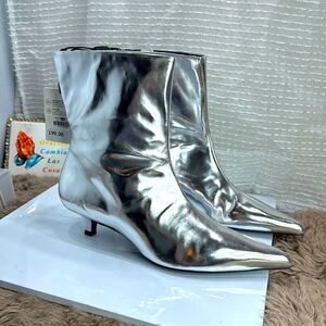 (W2) Zara NWT silver metallic leather ankle boots, size 39/8US