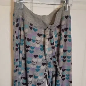 Aeropostale S Fleece Heart Patterned PJ Pants. Features shades of blue, purple, and gray.