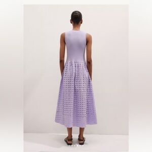 NWT ME+EM Knit Broderie Mixed Media Midi Dress in Powder Lavender Eyelet 8