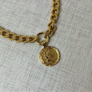 Upcycled Gold Tone Link Necklace with Queen Medallion Pendant