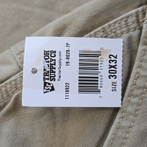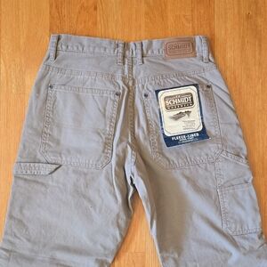 NWT men's Schmidt workwear cargo pants in khaki tan 30Wx32L. Features multiple pockets and durable fabric, 100% cotton outter, 100% poly lining.