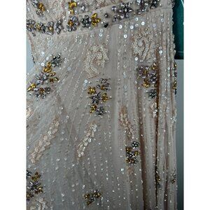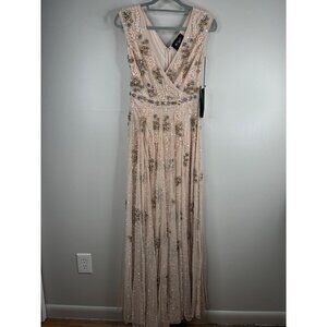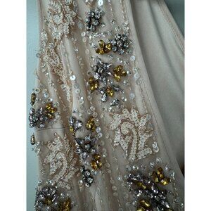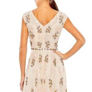 MAC DUGGAL Embellished Blush Wrap Over Sleeves A Line Gown Dress