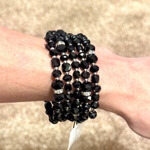 White House Black Market Black Beaded Coil Bracelet NWT