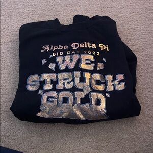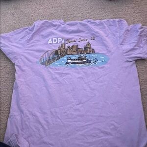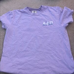 Collection of Alpha Delta Pi t-shirts and a tote bag. Features various designs and colors. Perfect for big little baskets. Items not sold separately. Includes 2 comfort colors shirts.