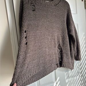 Textured brown sweater with crew neck. Casual and comfortable design. Ideal for layering. Armpit to armpit is 29 inches. Shoulder hem to bottom is 23 inches. Material is cotton and polyester