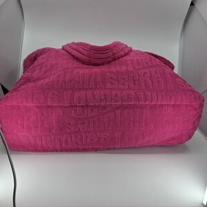 This limited edition Victoria's Secret tote is the ultimate "utility-meets-comfort" accessory. Moving away from traditional leather, it uses a plush, absorbent terrycloth that is perfect for a spa staycation or a beach weekend. The vibrant fuchsia color and embossed monogramming offer a high-energy look, while the generous 18-inch width ensures you can carry everything from your tech to your towels in one secure, zippered place.