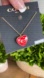 Refined chain necklace featuring vibrant red enamel heart locket pendant adorned with signature sculpted C motif. Sweet pendant is a functional locket.