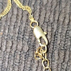 @hubbelt It doesn't seem plated but I am not certain. It used to have a tag that had 14k stamped onto it that was hanging by the closing clip. I edited my description for that reason! It doesn't have any green/rust/discoloration after sitting in storage for years though.