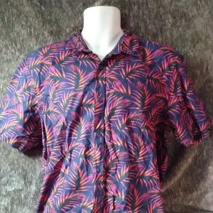 Elevate your style with this vibrant men's tropical print shirt. Featuring a striking pink and blue pattern, this shirt is perfect for casual outings or beach days. Stay comfortable and stylish all day long.