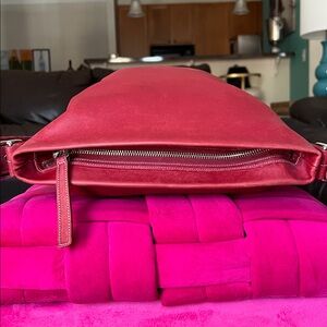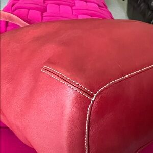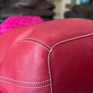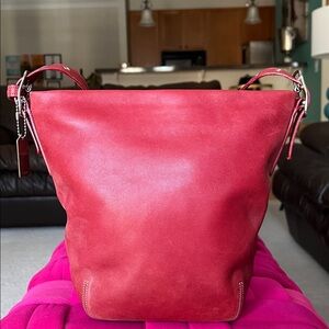 Stylish red hobo bag by Coach. Sleek design with silver hardware. Perfect for any occasion.