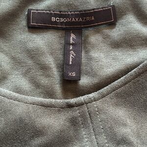 BCBG extra small Green suede Dress pullover sleeveless fitted sexy chic detail