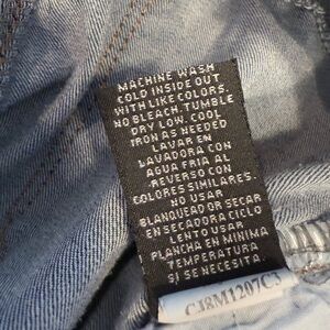1822 Taylor cropped distressed jeans with a rolled hem, zippered and buttoned fly, belt loops and the classic five pocket design. Cotton, polyester and spandex blend.