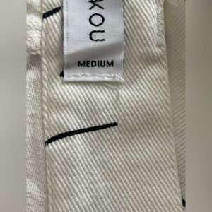 Shekou "Little Things" white denim jeans with a black abstract face print EUC