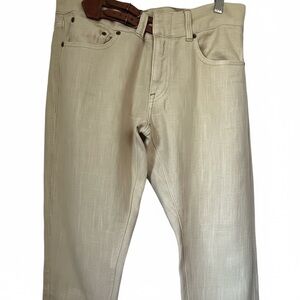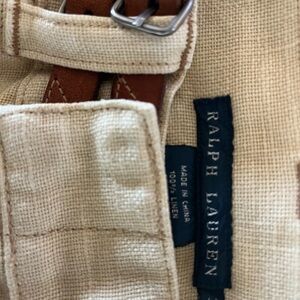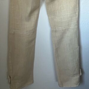 Ralph Lauren Cream, 100% Linen Pants with Leather Brown Accents