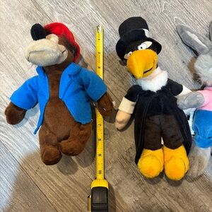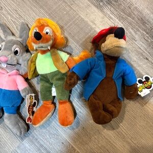 New with tag, Splash Mountain Song of the South set of four bean bag stuffed animals. Brer Bear, Brer Rabbit, Brer Fox, and Brer Vulture. Each have their original Mouseketoys tag on their hands.