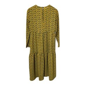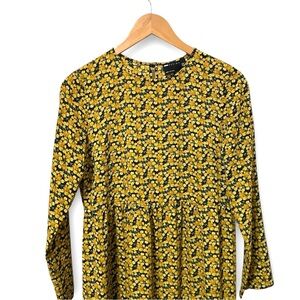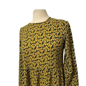 ASOS Yellow and Black Floral Long Sleeve Tiered Dress Size 6