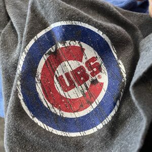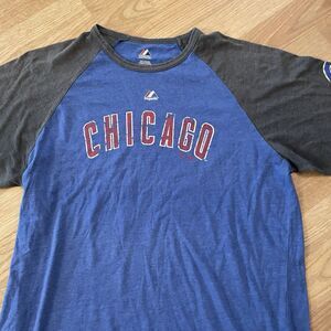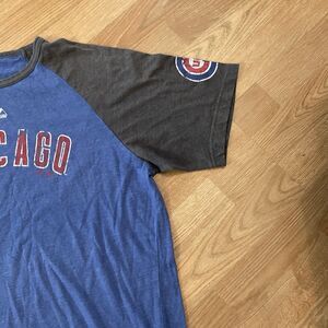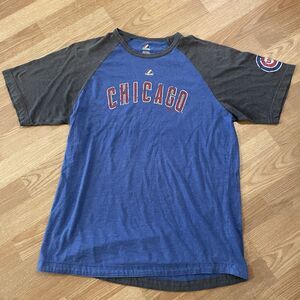 Majestic Chicago Cubs Graphic Print T Shirt Mens Size Large Blue