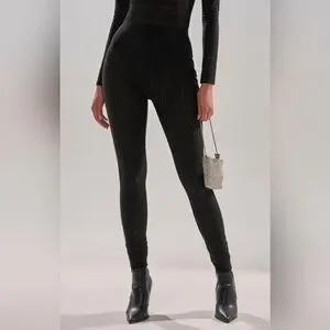 All the best memories are made after dark. The AKIRA Label Twinkling Lights Rhinestone Mesh Leggings in Black are a sleek, sexy style crafted from semi-sheer, dual-layer mesh. They feature a high-rise, curve-hugging fit, skinny pantlegs, and a wide elasticized waistband. Finished with tiny tonal rhinestone embellishments throughout that add dazzling dimension.