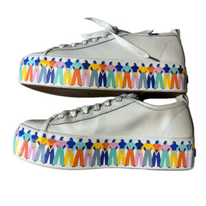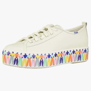 Keds Triple Up Leather Rainbow People White Platform Sneakers size 6.5