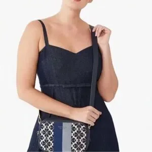 NWT! New! Kate Spade Spade Flower Jacquard Everything Mini Camera Bag Blue Multi