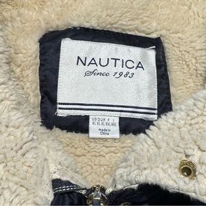 Nautica Womens XL Navy Blue Insulated Quilted Jacket Faux Fur Trim Jacket