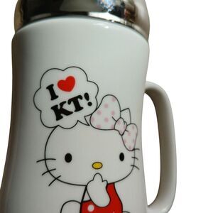 Hello Kitty White Travel Mug with Silver Mirror Lid Ceramic