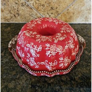 Temp-tations Floral Lace Red Bundt Pan Serving Platter Old World CeramicBakeware