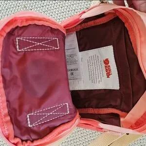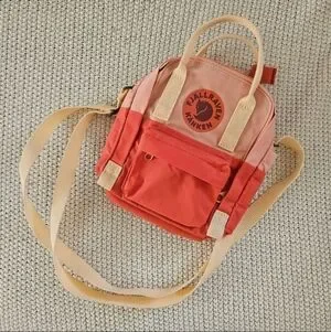 Chic Fjallraven crossbody bag. Features vibrant red and pink tones. Ideal for daily adventures.