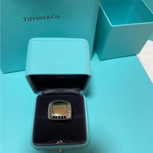 New, Tiffany & Co. Men’s 1837 Makers Trophy Signet Ring Silver and 18k gold